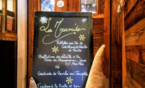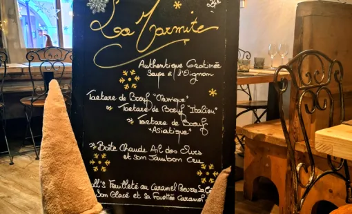Le restaurant la Marmite : l'Adresse où manger une Vraie Raclette Savoyarde à Valmorel. Le Chef Karl vous propose 7 Raclettes différentes.