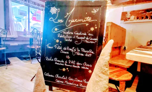 Le restaurant la Marmite : l'Adresse où manger une Vraie Raclette Savoyarde à Valmorel. Le Chef Karl vous propose 7 Raclettes différentes.